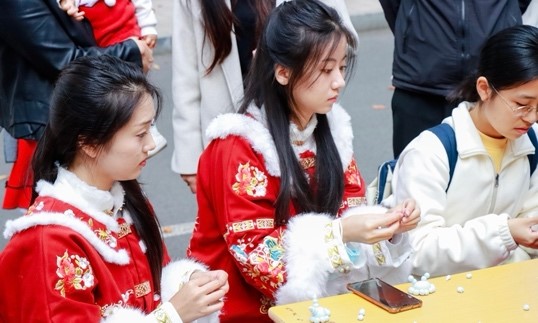 非遗传承于食、于器、于记忆、更于人心。文化共赏,于古、于今、于墨间、更于生活。外院研究生在此次活动中靓丽的身影,是当代青年积极向上、勇于担当的生动写照。身穿汉服的她们,用实际行动诠释了对传统文化的尊重和热爱,让活动更加生动有趣的同时,也为传统文化的传承和发展注入了新的活力,为赓续中华文脉贡献外语人的力量。
