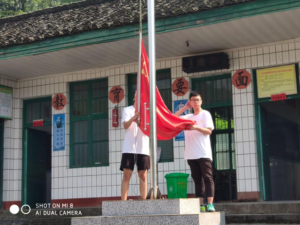 7月19日,进行了猫儿乡太阳山小学的开学第一课。早上六点半,队员们纷纷自告奋勇地下山去接孩子们上课,上午举办了开学仪式。