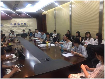 英语三个系系主任、部分授课教师代表以及英语专业24名17级及16级英语专业学生代表参加座谈。