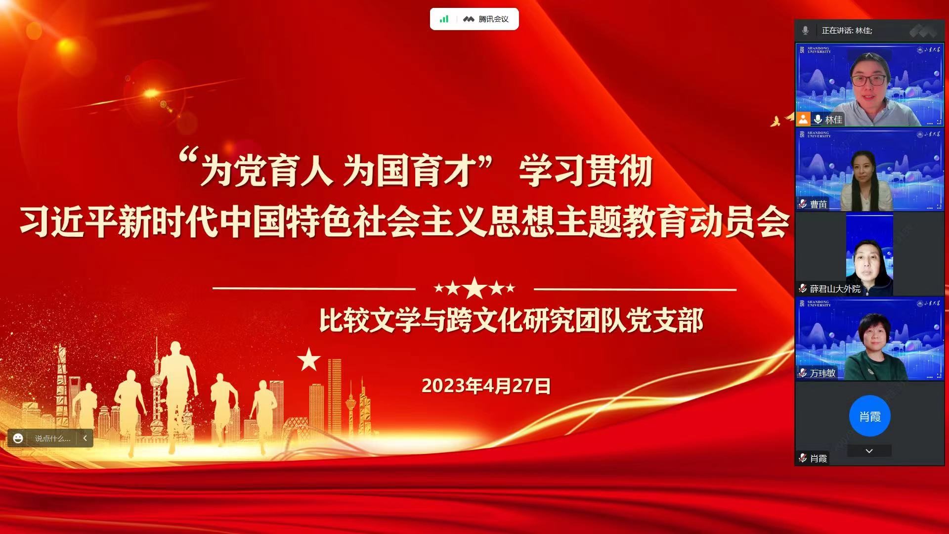 4月27日,必赢76net线路唯一官方网站比较文学与跨文化研究团队召开“为党育人 为国育才”学习贯彻习近平新时代中国特色社会主义思想主题教育党员大会,深入传达习近平总书记重要讲话、中央主题教育工作会议精神,对支部开展主题教育进行部署。全体党员出席会议。党支部书记林佳主持会议,并就团队深入开展主题教育作动员讲话。