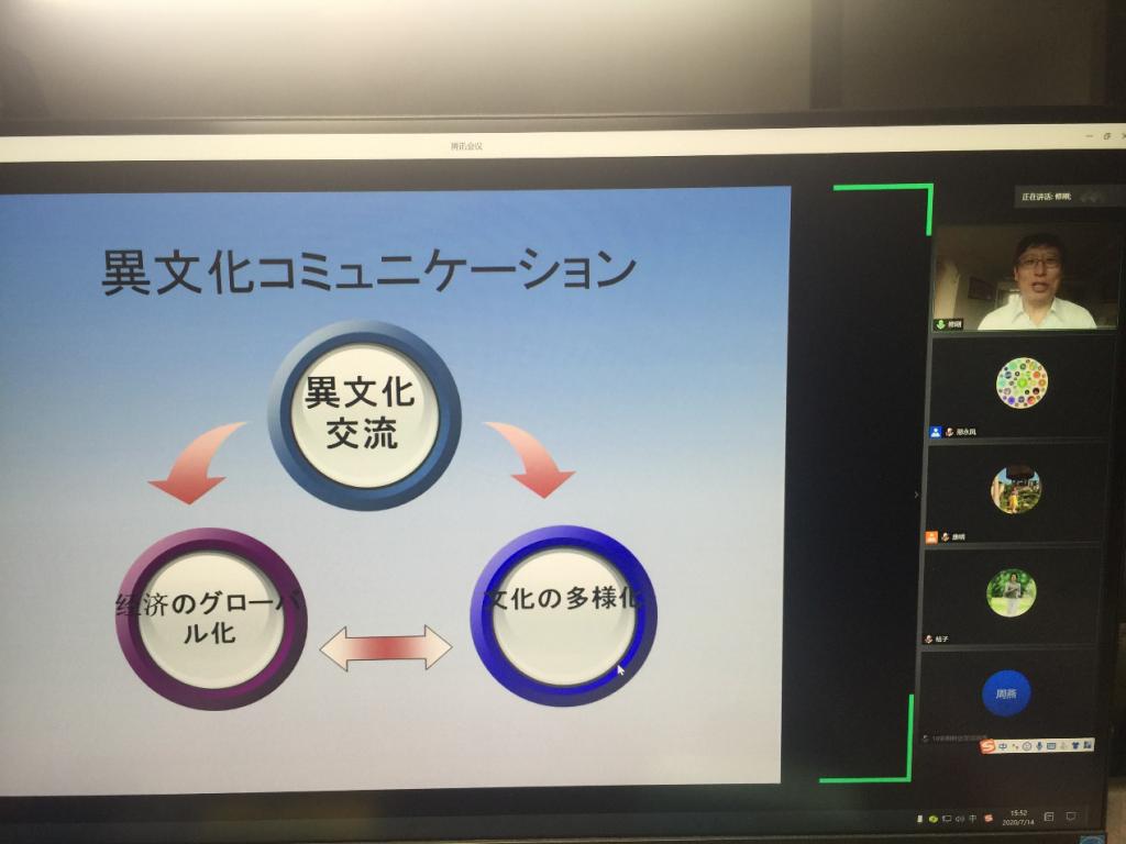 7月13日下午,必赢76net线路唯一官方网站“九十周年院庆系列活动”——线上学术报告顺利举办。天津外国语大学修刚教授应邀做客学院“环球论坛”,通过腾讯会议线上平台作了题为“跨文化视阈下的中日交流---从文化的同异说起”的学术报告。本次报告由必赢76net线路唯一官方网站日语系邢永凤教授主持,必赢76net线路唯一官方网站院长王俊菊代表学院致欢迎词,来自必赢76net线路唯一官方网站和其他高校的140余名师生共同参与聆听。