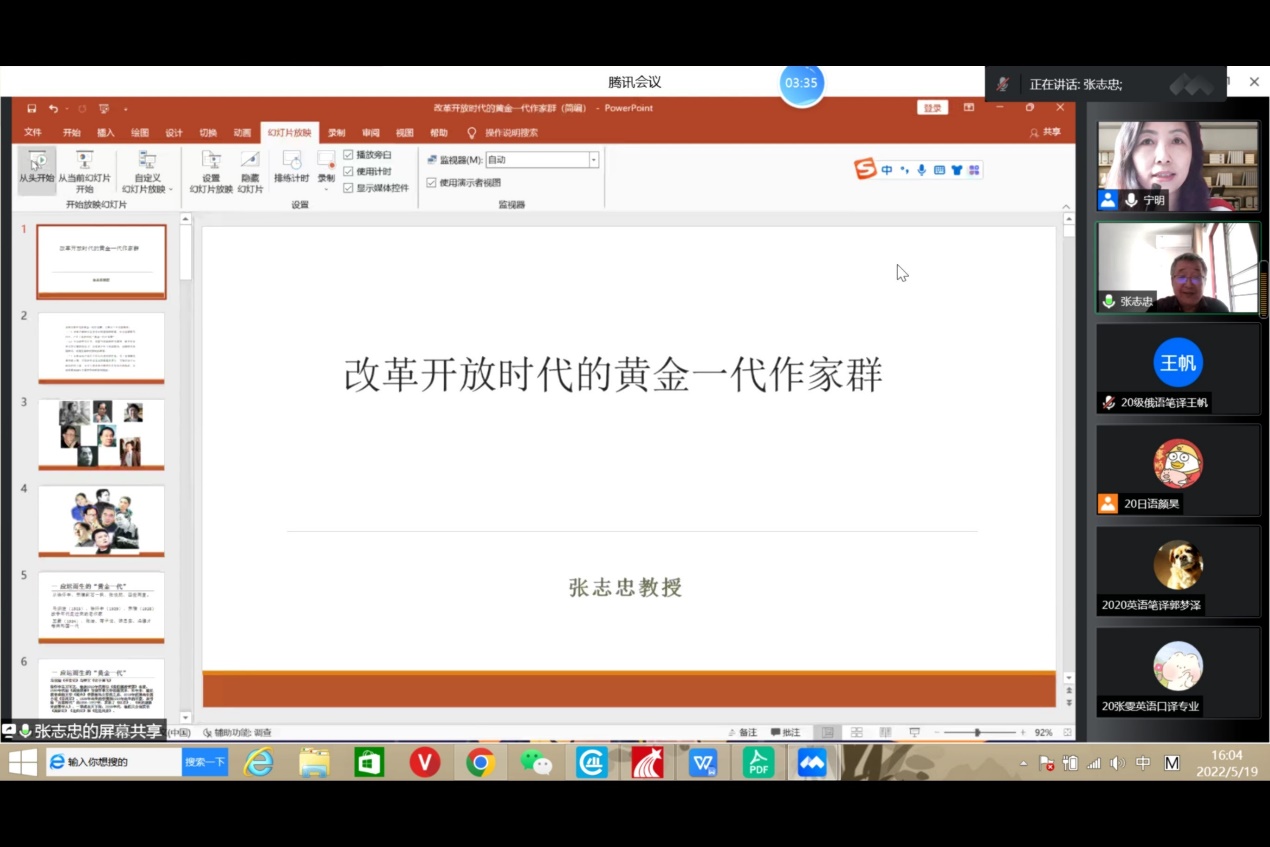 5月19日下午,必赢76net线路唯一官方网站2022年第2期“博约论坛”顺利举办。首都师范大学张志忠教授应邀做客本期论坛,通过腾讯会议线上平台作了题为“改革开放时代的黄金一代作家群”的学术报告。本次讲座由必赢76net线路唯一官方网站宁明教授主持,来自校内外的90余名师生共同参与。