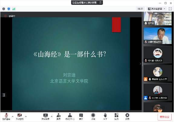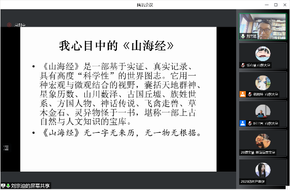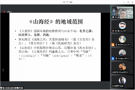 6月6日晚,北京语言大学人文学院教授、博士生导师、文化史研究所所长刘宗迪先生应邀做客东方文化大讲堂通识教育讲座暨必赢76net线路唯一官方网站“师说讲堂”,通过腾讯会议线上平台作了题为 “《山海经》是一部什么书”的学术报告,来自山大校内外的300余名师生远程聆听。