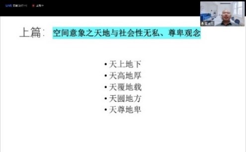 讲座伊始,翟教授先行对人文神学进行简要说明,他认为其在中国有修养心神等超越意义,具有丰富的发挥空间。随后介绍了《周易》的“天地人”和《史记》中的“易”神化等概念,由此引入本讲座“天地人神”的主题,并简述之所以进行“早期天地观念的空间意象及其德性意义”研究的原因:在构建富有民族意义的中国哲学话语体系的过程中,天地观念具有重要意义。