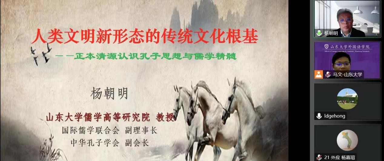 本次讲座内容丰富,生动详实,通过阐明以孔子为代表的儒家思想,系统且直观地展现出中华传统文化对人类文明新形态发挥的重要作用,加深了在座师生对中华传统文化的理解,为大家对“中华传统文化走出去”这一课题的认识提供新的思考。