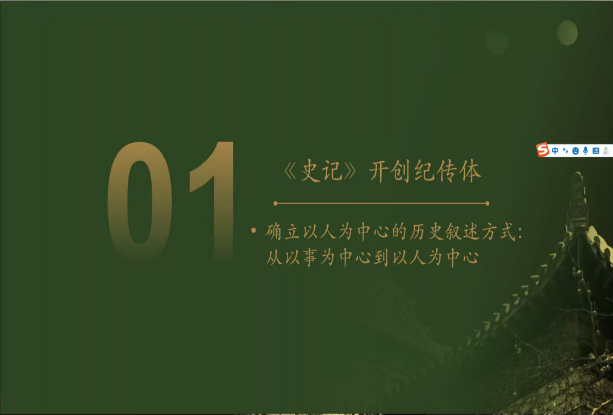 赵教授介绍到:《史记》以前的史传,如《尚书》、《春秋》、《左传》等都是以事件为中心来展开的记事之作,而《史记》作为纪传体的开创者,确立了以人为中心的历史叙述方式。故纪传体被后世尊为正史,之所以称之为“正”,跟它的内容与叙述方式有着密切的关系。纪传体的创立,在某种程度上达成了历史与文学的统一,为传记文学的产生奠定了基础。