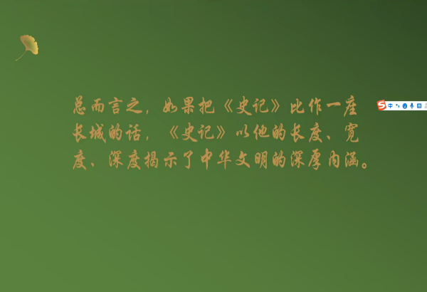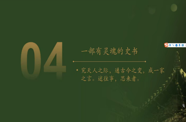 赵教授最后指出,《史记》作为一部有灵魂的史书,不仅“究天人之际,通古今之变,成一家之言”,还“述往事,思来者”,探求正道。也就是说,司马迁既想通过叙述找出历史的规律性,以此表达自己对政治的看法,又想将现实纳入其中,即通过叙述往事、叙述历史,来探讨政治的盛衰成败,人事的得失,进而对人对事作出自己的评判。由此看来,司马迁是本着服务于政治的宗旨创作了《史记》。这一宗旨在《史记》最后一篇文章《太史公自序》中足以验证,《史记》提供了治国之道,给政治提供借鉴,不愧是一部有灵魂的著作!
