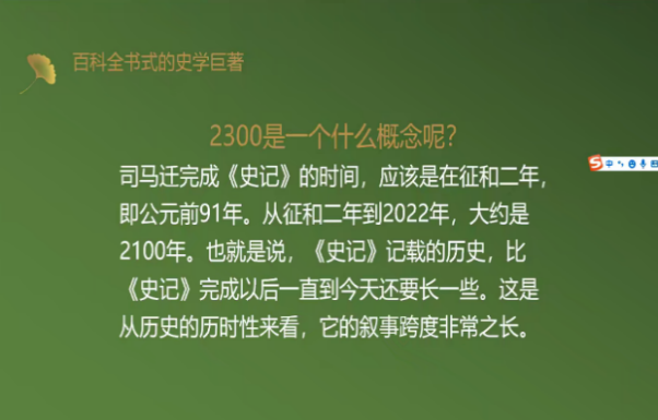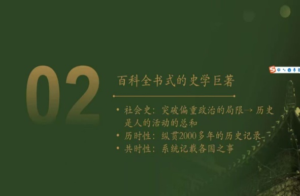 赵教授从历时性和共时性的角度论证了《史记》内容的广泛性和系统性,同时又转换角度说明《史记》不仅是一部社会史,还是一部百科全书式的史学巨著,因为除了政治、军事大事,上至天文地理,下至农业水利等各方面大事均被记录在案。更为重要的是,《史记》是中国历史的一座长城,我们想要了解黄帝到汉代的整个历史,不可或缺的书就是《史记》。尽管学术界曾对其产生过一些怀疑,但后来出土的大量甲骨文、金文器件,证实了《史记》之记载的可靠性。
