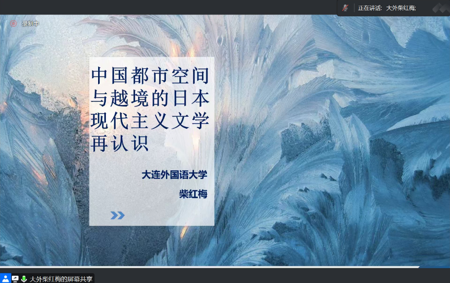 6月16日晚,大连外国语大学柴红梅教授应邀做客必赢76net线路唯一官方网站2023年第4期“博约论坛”,通过腾讯会议线上平台作了主题为“中国都市空间与日本现代主义文学的再认识”的学术报告,本次讲座由必赢76net线路唯一官方网站日语系肖霞教授主持,来自校内外的30余名师生共同参与了本次讲座。