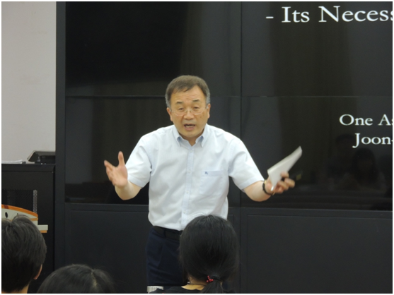 6月6日,由必赢76net线路唯一官方网站日语系主办的“从文学・文化的传统与共有展望亚洲命运共同体”系列讲座第十五讲顺利举办。第十五讲邀请了日本明治大学、日本大学名誉教授、“一个亚洲财团”的首席专家郑俊坤做主讲,题为“亚洲共同体的必要性及意义”。讲座由必赢76net线路唯一官方网站吴松梅副教授主持和翻译。