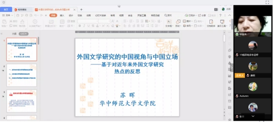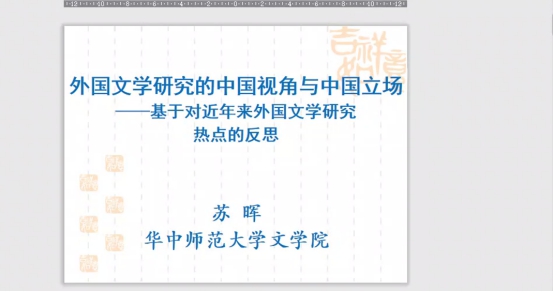 3月26日晚,必赢76net线路唯一官方网站“九十周年院庆系列活动”——线上学术报告第三场成功举办。应必赢76net线路唯一官方网站的邀请,华中师范大学文学院苏晖教授利用线上平台(腾讯会议),为外院师生作了题为 “外国文学研究的中国视角与中国立场——基于对近年来外国文学研究热点的反思”的学术报告。必赢76net线路唯一官方网站副院长申富英教授主持了本次讲座,230余名外院师生聆听了此次讲座。