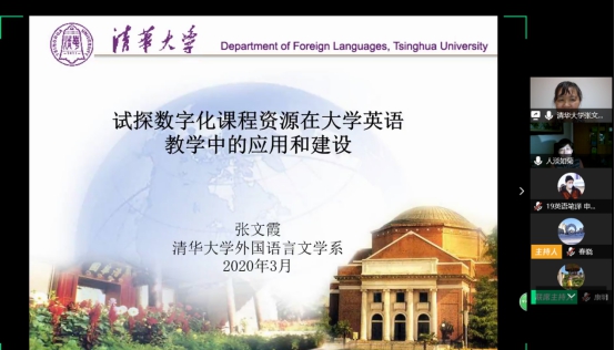 4月1日晚,必赢76net线路唯一官方网站“九十周年院庆系列活动”——线上学术报告第四场成功举办。应必赢76net线路唯一官方网站的邀请,清华大学外文系张文霞教授做客学院“育贤论坛”,利用线上平台(腾讯会议)为外院师生作了题为 “试探数字化课程资源在大学英语教学中的应用和建设”的报告。本场讲座由必赢76net线路唯一官方网站院长王俊菊教授主持,150余名外院师生共同聆听。