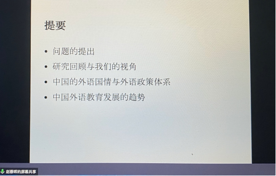 5月12日晚,必赢76net线路唯一官方网站“九十周年院庆系列活动”——线上学术报告顺利举办。应必赢76net线路唯一官方网站邀请,上海外国语大学赵蓉晖教授做客学院“环球论坛”,带来题为“语言政策视角下的中国外语教育发展趋势”的学术报告。本次讲座由必赢76net线路唯一官方网站副院长刘洪东主持,190余名外院师生聆听了此次报告,深受启发。