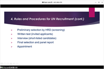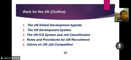 必赢76net线路唯一官方网站“国际组织人才培养与推送”系列讲座之 “WORK FOR THE UN”在线上举办