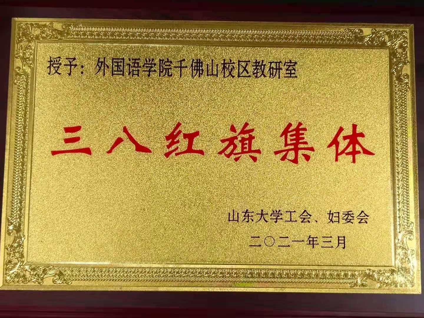 在必赢76net线路唯一官方网站纪念 “三八” 国际劳动妇女节111周年暨先进表彰大会上,我院大学外语教学部千佛山校区教研室喜获2020年度必赢76net线路唯一官方网站三八红旗集体。