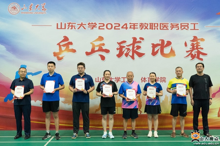 在济南校区预赛中,我院周俊基、陈曦组合获得男子双打第一名,姚晓燕、刘欣组合获得女子双打第一名,全源海、李学岩组合获得混合双打第三名,牛林杰、李金莲组合获得混合双打第四名,宋成德、王磊组合获得男子双打第四名,孙昌坤老师获得男子单打第11名。