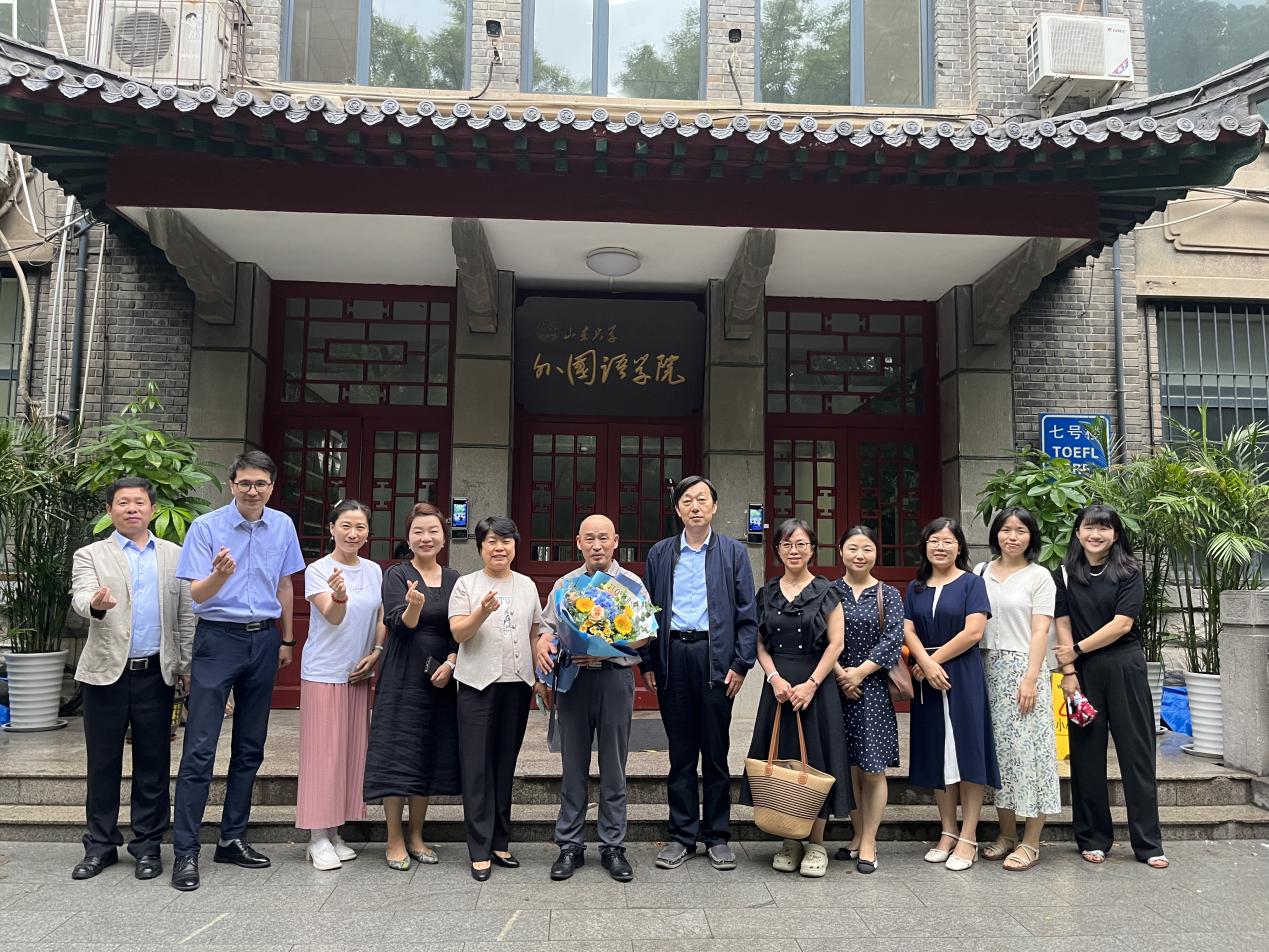 韩语系全体教师高度赞扬李成道老师无私奉献的师者精神,与会学生向李成道老师甘于奉献的教学精神表达感激之情。李成道老师通过影像资料回顾了在韩语系工作的点滴过往,并表示自己“退休不退岗”,会一直为学院发展做贡献。