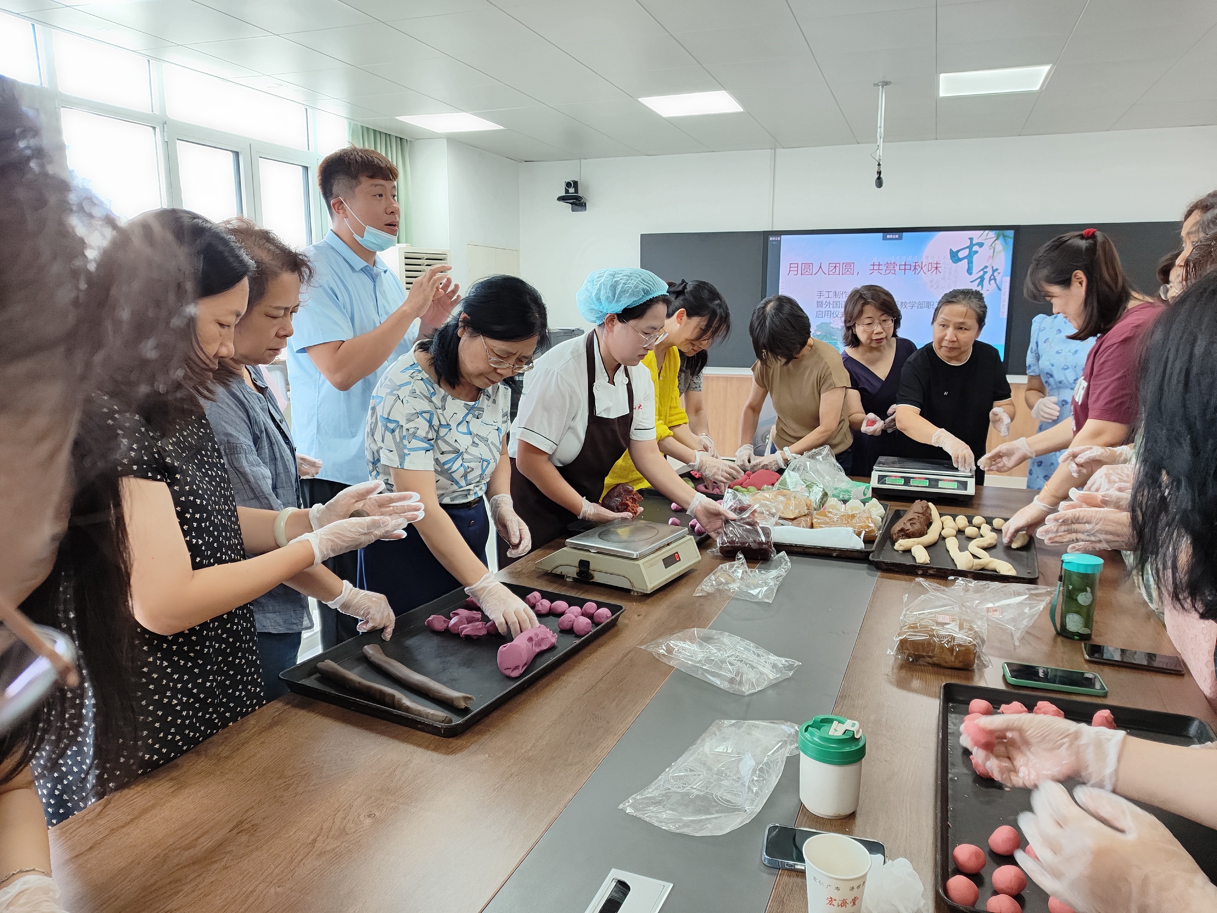 在必赢76net线路唯一官方网站后勤保障部餐饮管理服务中心专业糕点师的指导下,大家一起制作了六种寓意美好的月饼,有“花好月圆”、“高山流水”、“步步生花”、“好运兔子”、“年年有余”等。老师们欢聚在职工之家,一起动手制作月饼,感受传统文化的魅力。