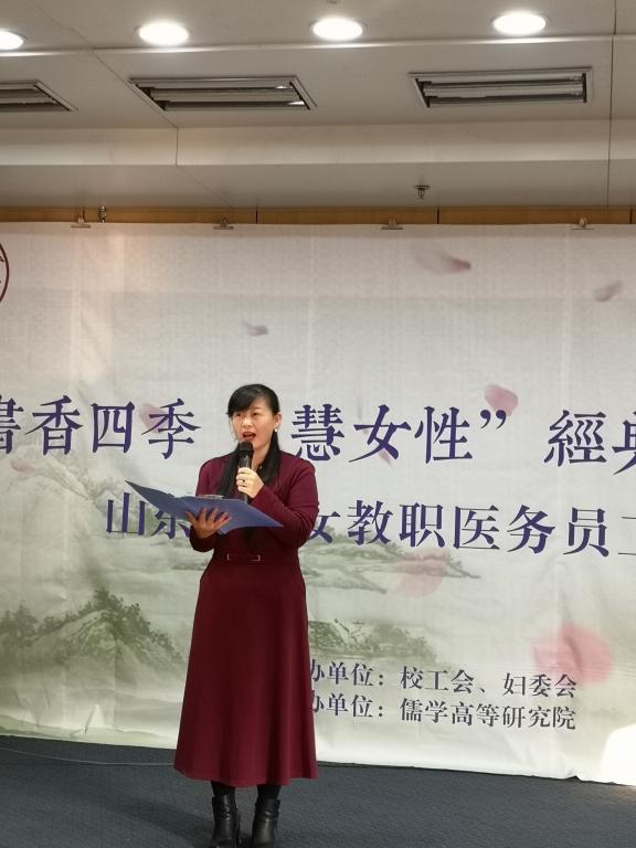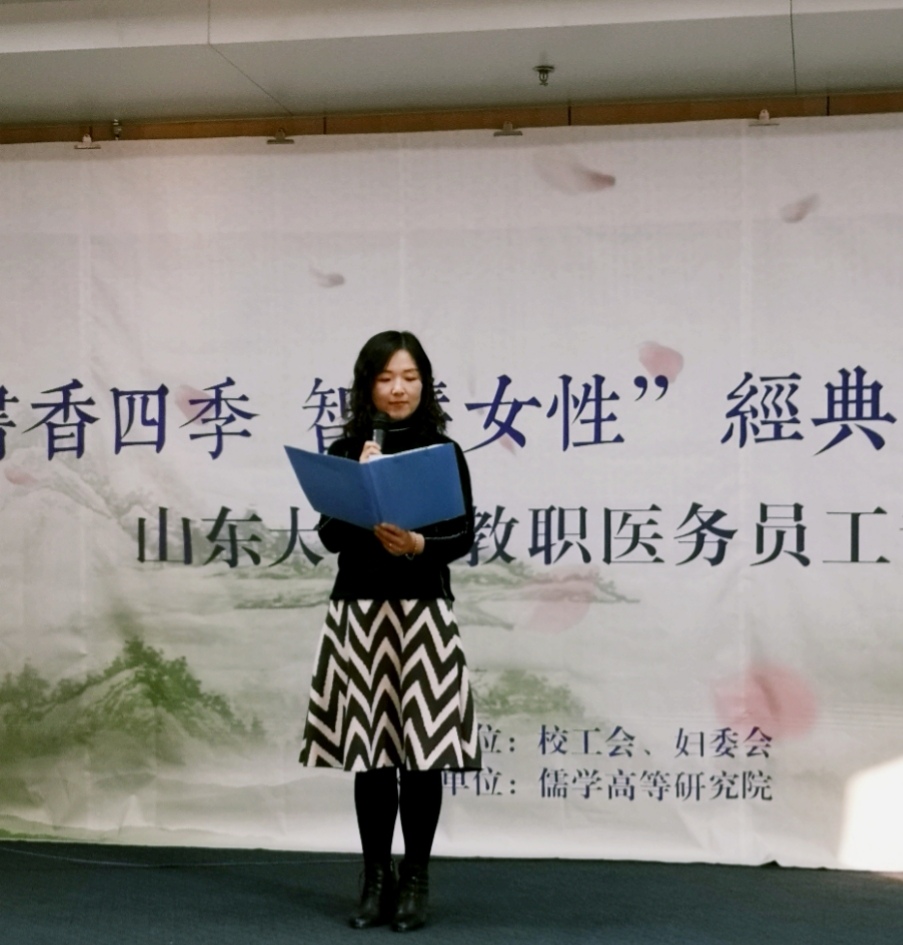 11月8日,学校工会、妇委会与儒学高等研究院工会联合举办了“书香四季智慧女性”经典诗文诵读会。此次诵读会旨在进一步弘扬优秀传统文化,提升广大女师生医务员工的人文修养和气质。我院工会组织宣传委员孟庆娟老师与大学外语教学部柳婷婷老师参加了活动,展示了外院女教工的风采。