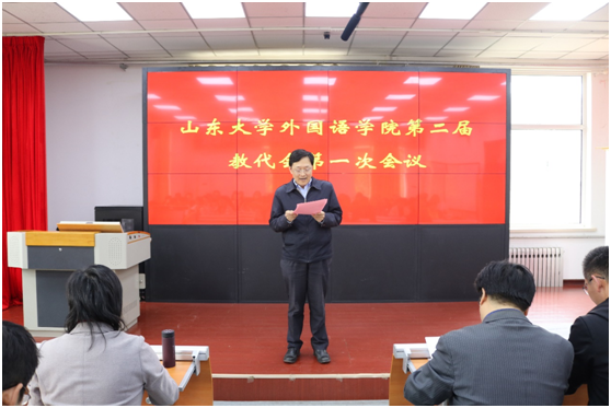 薛佩军致开幕词。他指出今年是学校实施学术强校,努力实现“由大到强”的关键一年。明年将迎来建院90周年,90年来,一代一代外院人前赴后继,砥砺前行,用行动践行了担当,铸就了辉煌。这是学院实现由大到强的力量和信心的源泉。鼓励与会代表们积极建言献策,为学院发展规划、人才队伍、教学科研等各方面工作多提宝贵意见。全体师生要继续担当作为,迎难而上,矢志不渝,只争朝夕,努力实现外院 “由大到强”。