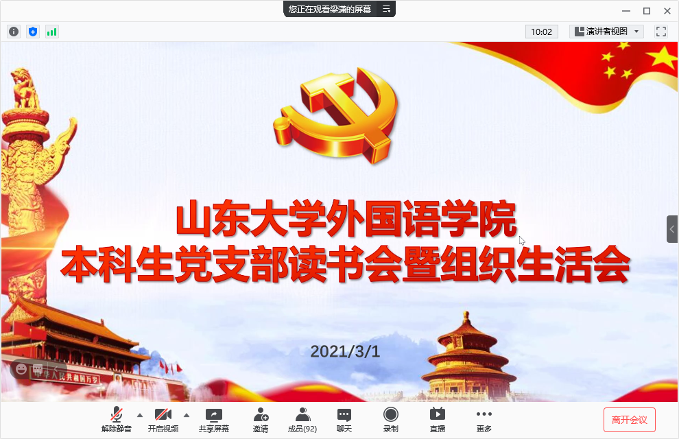 3月1日,必赢76net线路唯一官方网站本科生党支部举办了线上读书会暨组织生活会,必赢76net线路唯一官方网站本科生党支部全体党员出席会议,本科生第二党支部副书记梁潇主持会议。