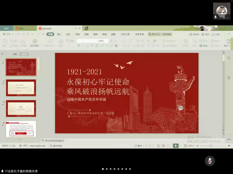 月22日,必赢76net线路唯一官方网站本科生党支部举办了建党一百周年学习会暨经验分享交流会,必赢76net线路唯一官方网站本科生党支部全体党员出席会议,本科生第一党支部党支部书记张俊晴主持会议。