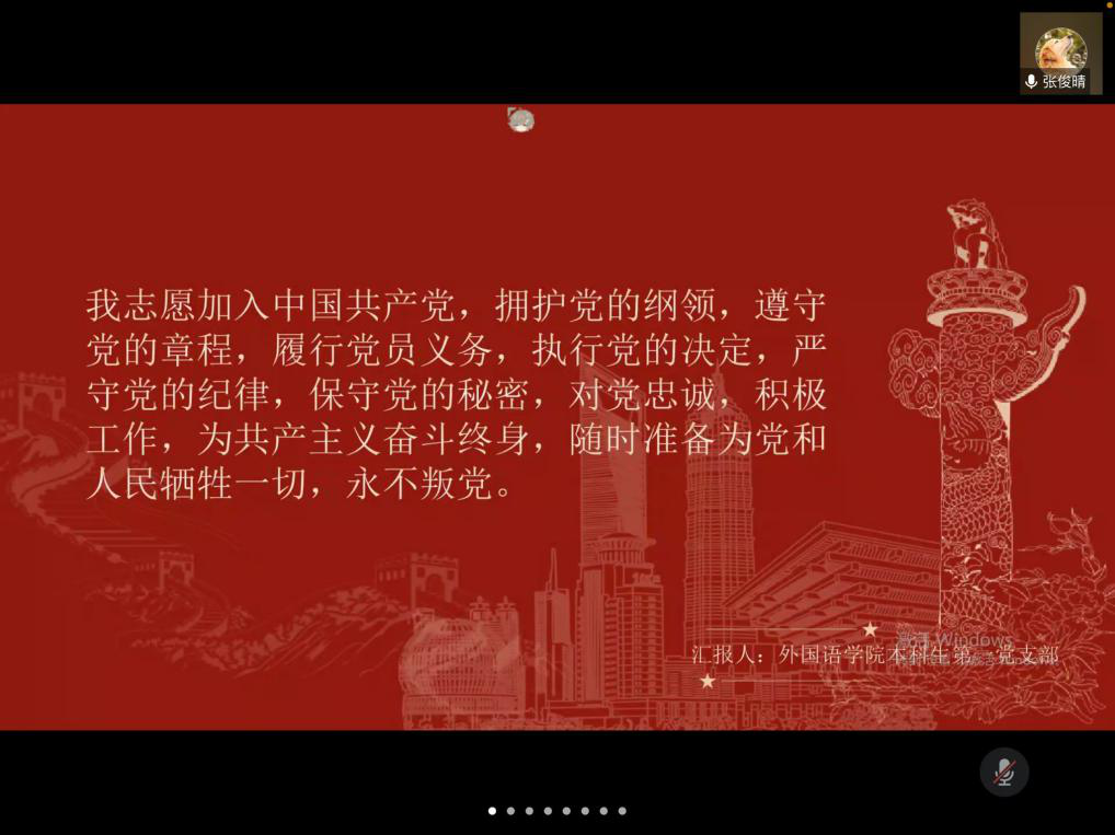 报告主要从中国共产党的风雨历程、新时期重要指导思想和会议精神以及我辈青年之担当等三方面展开,全面讲述了建党一百周年以来党的历史道路,最新会议精神以及新时代党员的责任与担当。报告的最后,全体党员一起重温了入党誓词。