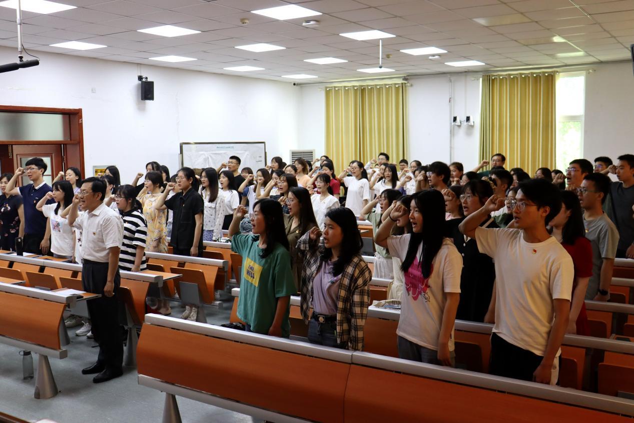 2021年6月8日下午,必赢76net线路唯一官方网站在七号楼301举行了2020-2021学年第二学期新党员入党宣誓大会暨庆祝建党一百周年专题党课。必赢76net线路唯一官方网站党委常务副书记薛佩军,副书记王海华,副书记魏鲁鸿,组织员周俊基,党务秘书马蕾和全体新党员参加本次大会。本次大会由必赢76net线路唯一官方网站党委副书记魏鲁鸿主持。