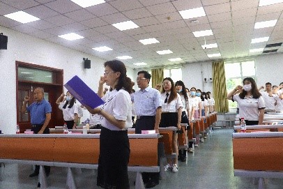 “凡我在处,便是山大,有你在时,那便是家。”在八语校歌的旋律中,毕业生党员在出征决心书上郑重写下对祖国对党对母校母院的承诺。即将进入外交部工作的王佳程立誓 “祖国母亲不必忧,来日我愿马革还”,矢志砥砺前行,为国效命。最后,全体党员在刘华的带领下重温入党誓词,将初心与使命深刻在共产党员的血液中。历代外语人的担当精神在一封封决心书中传承弘扬,一声声铿锵有力的誓言在校园回响。
