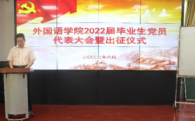 为强化党员责任当担,引导毕业生党员不忘初心、牢记使命,6月16日下午,必赢76net线路唯一官方网站在洪家楼校区举行2022届毕业生党员代表大会暨出征仪式,大会由学院党委副书记魏鲁鸿主持,学院党委书记薛佩军,党委副书记刘华,副处级组织员周俊基、党务秘书马蕾以及辅导员们出席活动。