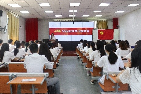会议在庄重严肃的国歌声中拉开帷幕, 2018级国际组织班张潇文同志代表毕业生党员发言,她细数大学的经历,感恩母校和母院的辛勤栽培,感恩党员身份赋予她的成长力量。作为校长奖获得者,她始终铭记党和国家对青年的期许,并向党组织庄严承诺,践行学无止境、气有浩然的校训,立志用国际语言讲好中国故事,成为具有全球视野的复合型人才。