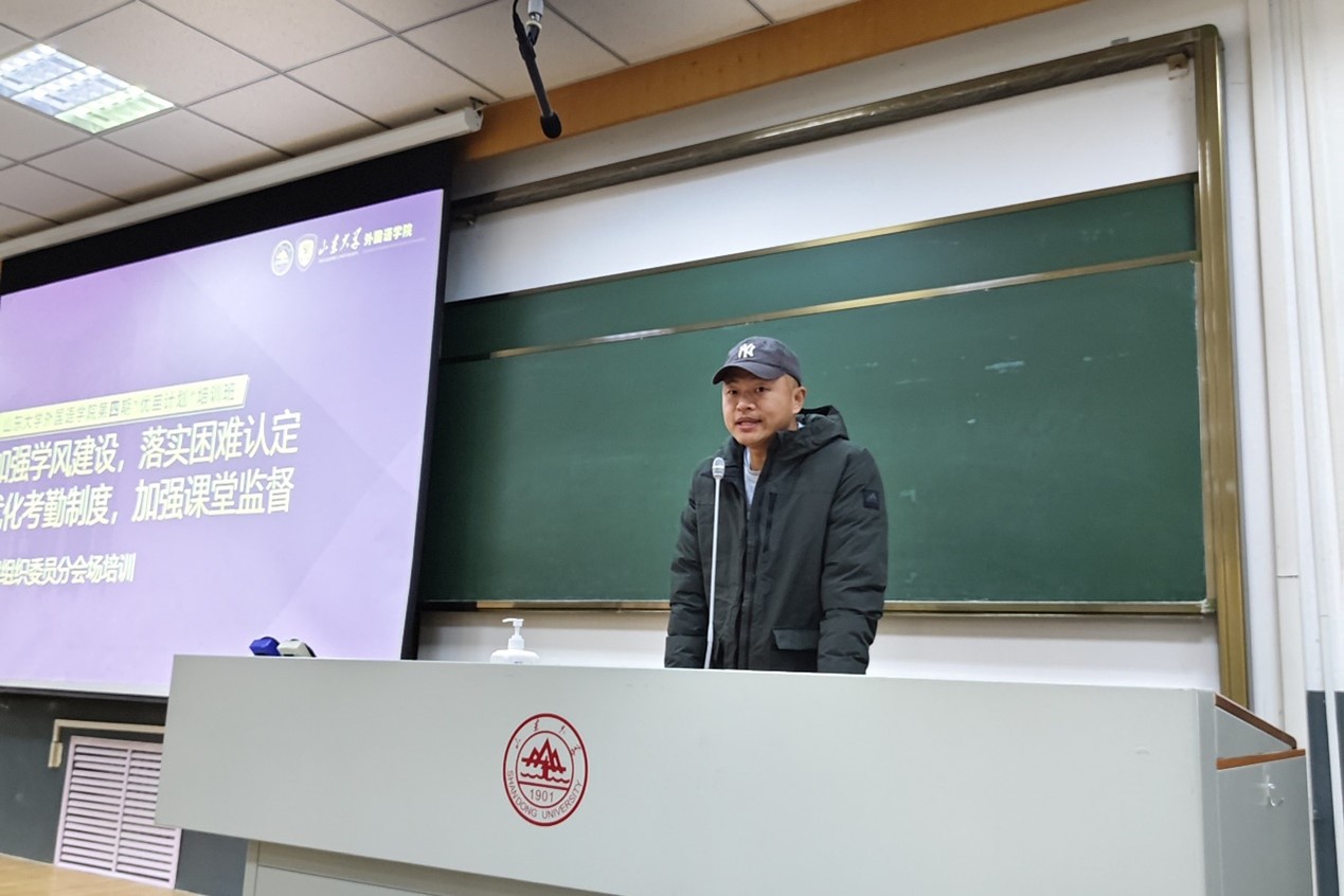 开班仪式后,三个分会场同步开展主题培训活动。在团支书培训会场,学院团委书记朱蕾结合外院专业特色,详细讲述了各团支部在组织建设、校园文化、创新创业、社会实践、志愿服务、团学宣传等方面的工作开展思路;2022级辅导员赵婧婧以“朋辈同行,助人自助”为主题,强调了大学生心理健康辅导的重要性,从群体层面和个体层面分别概括了团支书在学生心理健康发展中的作用、要求与职能。在班长培训分会场, 2023级辅导员高述凯以“团结班委,凝聚同学,做好班级建设”为主题,讲解了班长的职责安排、团队建设的要义、集体发展的规划,并鼓励各位学员贯彻“为长远计、为发展谋,各美其美、美美与共”的工作原则。在组织委员培训分会场,由教务科刘斌围绕《必赢76net线路唯一官方网站本科学生学籍管理规定》,详细讲解了入学与注册、修课与考试、考核与成绩、转专业与海外交流等管理规定,并解答学员疑惑;2020级辅导员张心慧讲解了“济困、励学、厚德、强能”四维资助育人体系的内涵和形式。统一培训结束后,各分会场优秀学生干部代表进行了丰富详实的经验分享,各组进行面对面讨论并分享心得,现场交流氛围热烈,效果显著。
