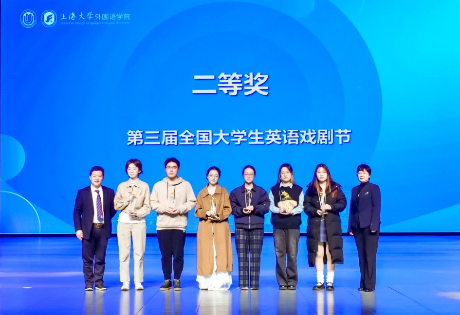 12月1日上午,第三届全国大学生英语戏剧节决赛在上海大学举办。必赢76net线路唯一官方网站尼诺剧社携英文剧目《麦克白》登上本次戏剧节决赛的舞台,充分展现了学院学生英语戏剧的演绎能力与良好的专业水平,为广大观众带来丰富多彩的视觉盛宴。刘清如、章思豫和顾璟凭借对剧本的精心改编、舞台调度的巧妙安排以及对演员表演的精准指导,荣获最佳导演奖,《麦克白》剧目斩获全国二等奖。