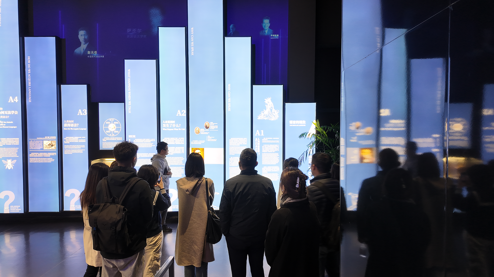 11月30日上午,研学团参观了上海外国语大学世界语言博物馆。在博物馆志愿者的热情讲解之下,研学团成员浏览了“语言的诞生”等八个展览篇章,通过参观馆内展陈的图片、文献资料和多媒体内容展示,逐渐了解了世界上多种语言的发展历史与进程,充分感受了语言文字所蕴含的独特魅力。通过多模态展陈方式,调研团成员认识到了从语言要素到书写系统,再到文化文明的深层关系,见识了如楔形文字等形态各异的文字形式,感受到世界语言的多样性和共通性,提高了语言学习与研究的热情。