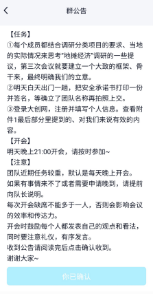 7月23日,“巷陌烟火队”进行了第二次线上会议,明确了第一阶段下各成员的具体分工:李晗、张菡珈负责查阅相关资料及参考文献,为后续调研的总结分析奠定基础;符腾藩、吴淑恒负责电子表单的制定,形成调查问卷,拟定线下采访大纲;何栩漾负责推文工作的撰写与投稿,需要熟悉操作流程,每日进行活动记录;梁依琦与其他海南籍同学确认了各自驻地内开展实践活动的时间、地点,准备录音录像设备,联系当地接收单位,进行线下调研。吕婉茹负责熟悉并梳理流程,整理活动及比赛所需材料,确定分工协作的具体内容,并通过群公告的方式每日告知各位成员。严谨完整的工作提醒,确保了实践活动有条不紊地开展。