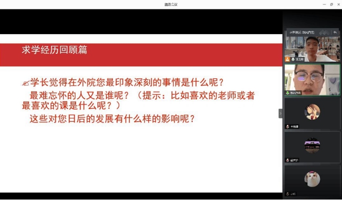 采访伊始,王玉阳进行了简短的团队介绍,并向张钟凯说明了此次寻访的目的。恰逢外院90周年华诞,学院组织了多样的庆祝活动,此次采访作为院庆的一部分,旨在汇聚校友力量,激励在校生以校友为榜样,携手共创学院美好未来。