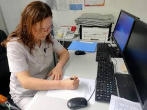 队员赵颖颖则与医务工作者进行了细致地交谈,在交谈中她了解到,目前医院内都已经制定和实施了针对健康扶贫的相关措施。比如,门诊的“三免六减半”政策和设立精准扶贫一站式的结算窗口等。相关措施极大地减轻了贫困人口的看病负担,便利了贫困人口的看病就医。