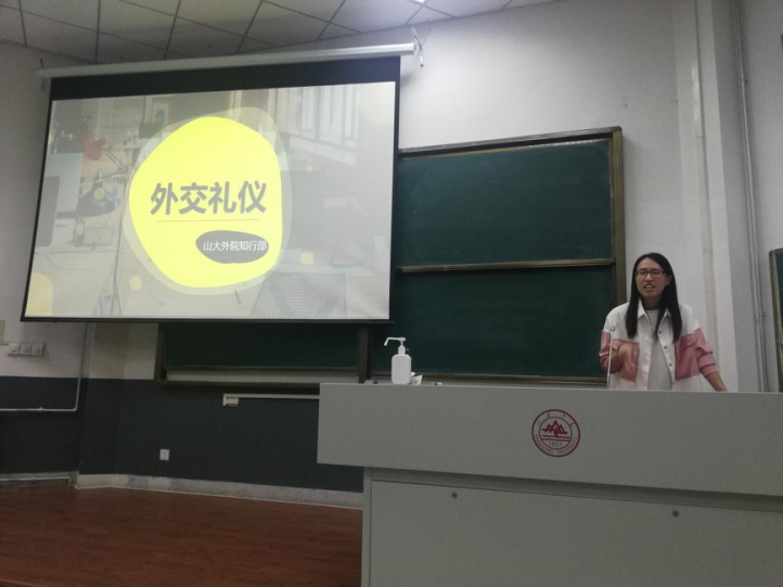 随后,王可心介绍了外交礼仪方面的知识。她不仅深入阐释了日常礼仪和外交礼仪方面的规范知识,还结合疫情下的礼仪变化做了进一步说明,引导学生在疫情期间的礼仪举止要更多一层安全保障。