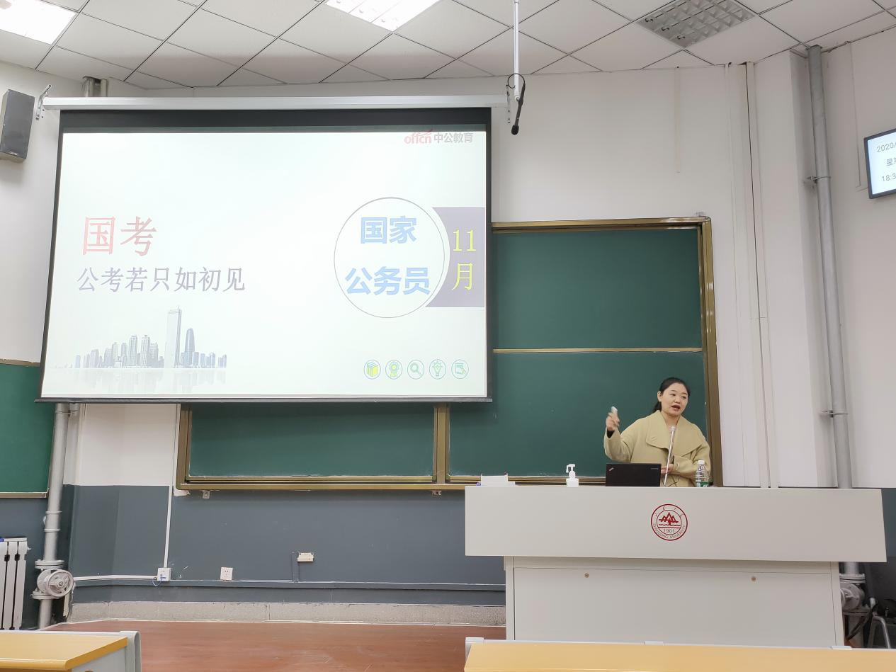 11月6日晚,必赢76net线路唯一官方网站在洪家楼校区举办国考备考讲座。本次讲座由必赢76net线路唯一官方网站研究生会实践部主办,由中公教育资深品牌宣讲师阚维佳担任主讲人。