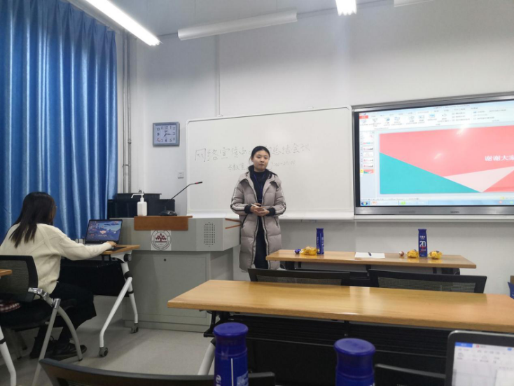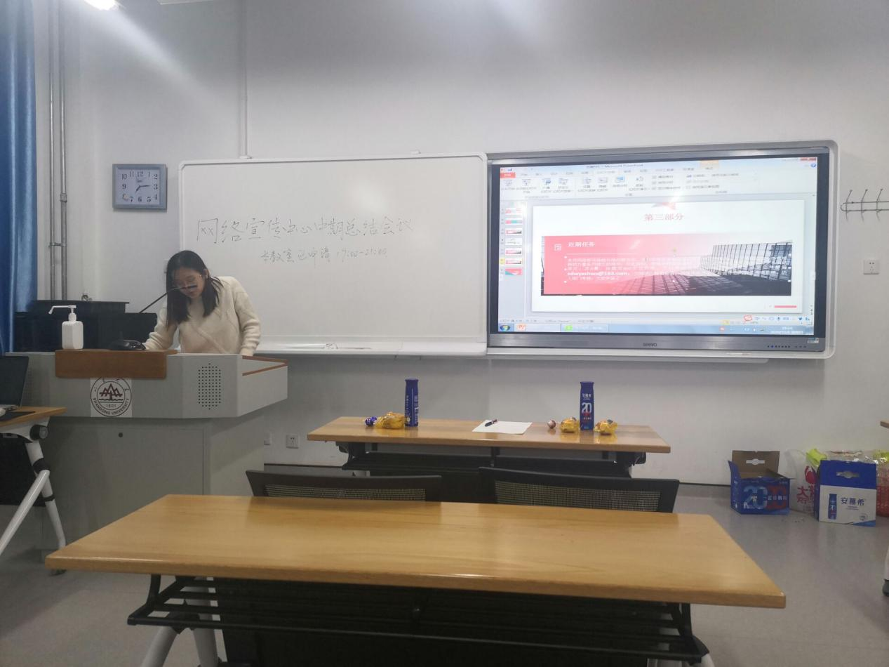 首先,网络组进行总结汇报。刚梦茹从工作回顾、未来工作和近期任务三方面进行中期总结,并对网络组志愿者近期承担的推文撰写和视频制作等任务给予肯定与感谢。最后,,刚梦茹对近期工作中出现的各方面问题提出了相对应的解决方案。