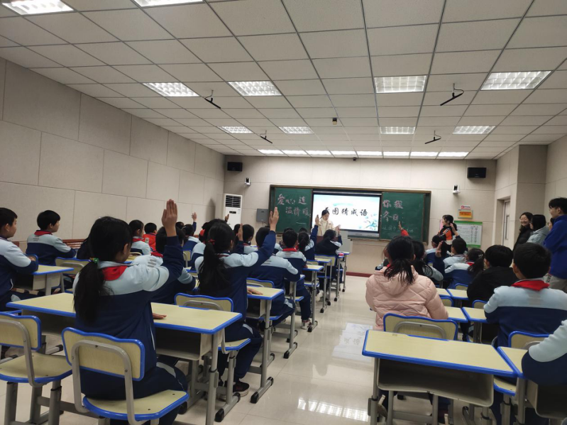 接着,在12月17日,青志协成员与招募的志愿者们一起来到了殷陈小学,给孩子们带来了生动有趣的趣味课堂和温暖的围巾。在趣味课堂上,看图猜成语和观看小猪佩奇的活动给孩子们带来了无数的欢乐,孩子们也用他们的热情感染了在场的每一个人。趣味课堂不仅增加了孩子们的文学和英语知识,也给孩子们带来了欢乐和友谊。趣味课堂结束后,就进入了最重要的环节——围巾分发。孩子们在座位上等待围巾的分发,现场秩序井然、其乐融融。当围巾分发完毕之后,每个孩子都收到了一张明信片,他们用稚嫩的字体一笔一划认真写下对哥哥姐姐们的感谢,其中还有几个小朋友提前一周开始准备画送给外院全体志愿者礼物。一笔一划,写下的是感恩;一墨一彩,画出的是温暖。