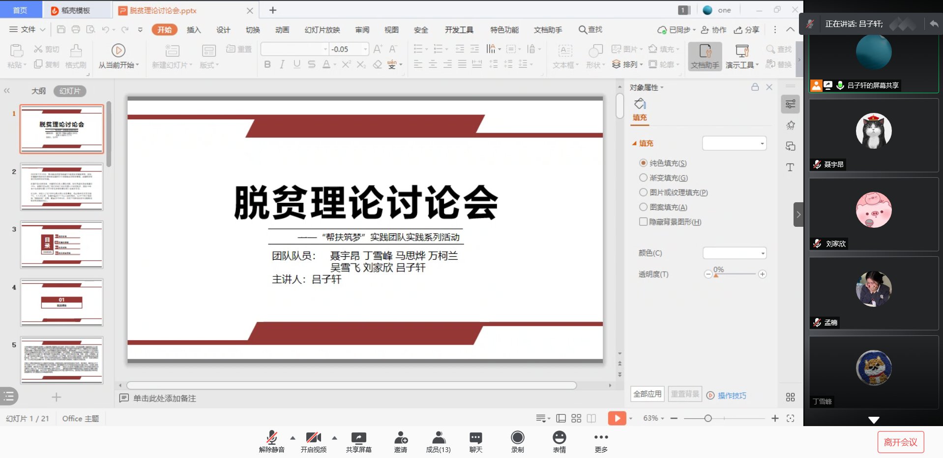 1月29日,为了为后续工作夯实理论基础,必赢76net线路唯一官方网站“帮扶筑梦”宣讲队召开了线上脱贫理论讨论会,吕子轩担任主讲人。