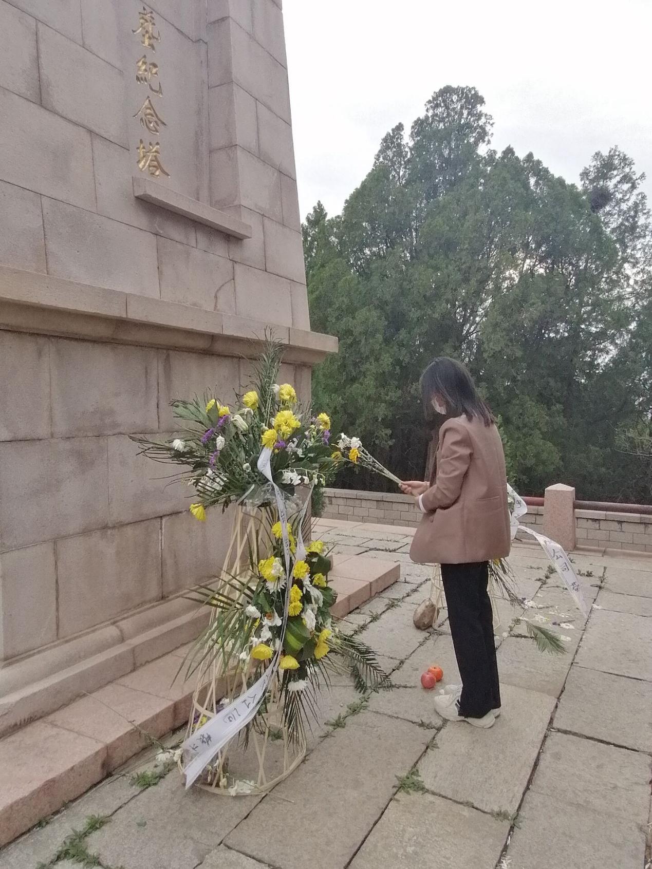 4月5日,我团支部成员赴济南革命烈士陵园开展清明祭英烈扫墓活动。济南辛亥革命烈士陵园位于千佛山东麓,始建于民国二十三年。首先映入各团员眼中的是一块正面刻"辛亥革命烈士墓",背面刻《辛亥革命山东烈士墓重修记略》的黑色花岗石影壁。在邱可曼的带领下,本支部成员向烈士敬献花圈,并默哀三分钟,以表达对革命前辈的无限哀悼与追思。拾阶而上,翠柏掩映之下,是呈品字形布局的三座主墓,正中是同盟会山东分会主盟人、山东辛亥革命领袖徐镜心之墓,东西两侧分别是老同盟会员刘溥林、薄子明之墓。班长胡倩如和学习委员国晓为支部成员逐一介绍了他们的事迹。通过讲解,团员们也对那段充满刀光剑影的岁月有了更深入的了解和体悟。沿石阶攀到最南端,是陵园的主体建筑----纪念塔。正面刻着"山东革命先烈公葬纪念塔"11个大字,本支部团员再一次献上鲜花,鞠躬默哀。