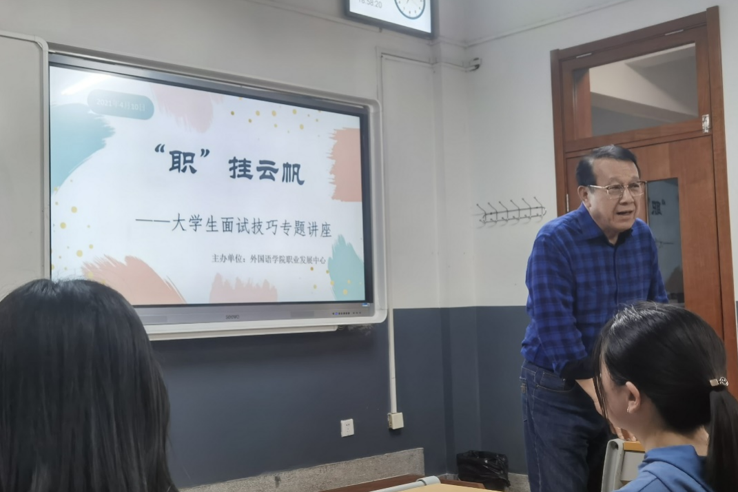 4月10日晚,“职”挂云帆——大学生面试技巧专题讲座在洪家楼校区顺利举办。主讲人为必赢76net线路唯一官方网站创业训练营创业导师于建成。于老师在讲座中主要谈及了大学生职业发展、人生规划两个方面。首先,高学历必然是人才竞争的重要优势,但同学们更应当注重个人能力的培养。于老师提到,就外语专业的同学而言,大家应当提高“用外语思考的能力”。之后,于老师又指出同学们需要不断提升个人的能力,在职业选择和面试考核中,同学们不能树立“铁饭碗”的观念,应当秉持着“丰富经验,提升能力”的原则进行选择。我们要积极地锻炼自己的能力,特别是“与人交往的能力和分析问题、解决问题的能力”。