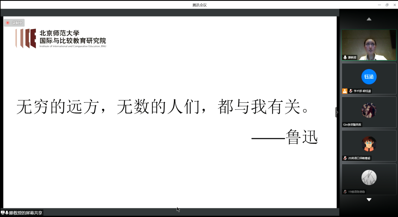 主讲人简介:滕珺,北京师范大学国际与比较教育研究院教授、博士生导师、副院长,世界比较教育学会联合会财务委员会委员,亚洲比较教育学会助理秘书长,中国教育学会比较教育分会秘书长,北京明远教育书院副院长,曾任美国哥伦比亚大学师范学院兼职副教授,世界银行全球教育合作伙伴短期顾问,长期从事比较教育研究,主要研究领域包括国际组织教育政策、21世纪核心素养、全球胜任力、全球教育治理、国际教育和发展教育。