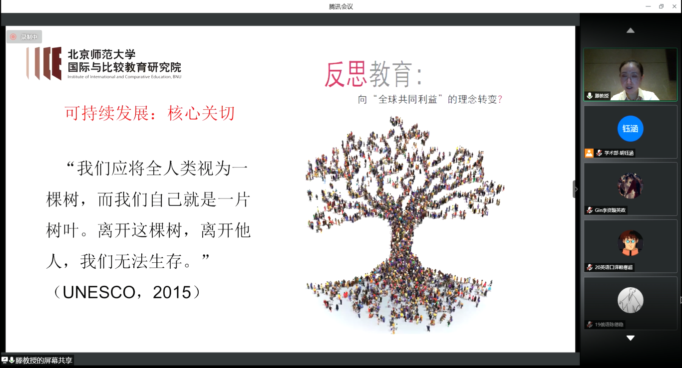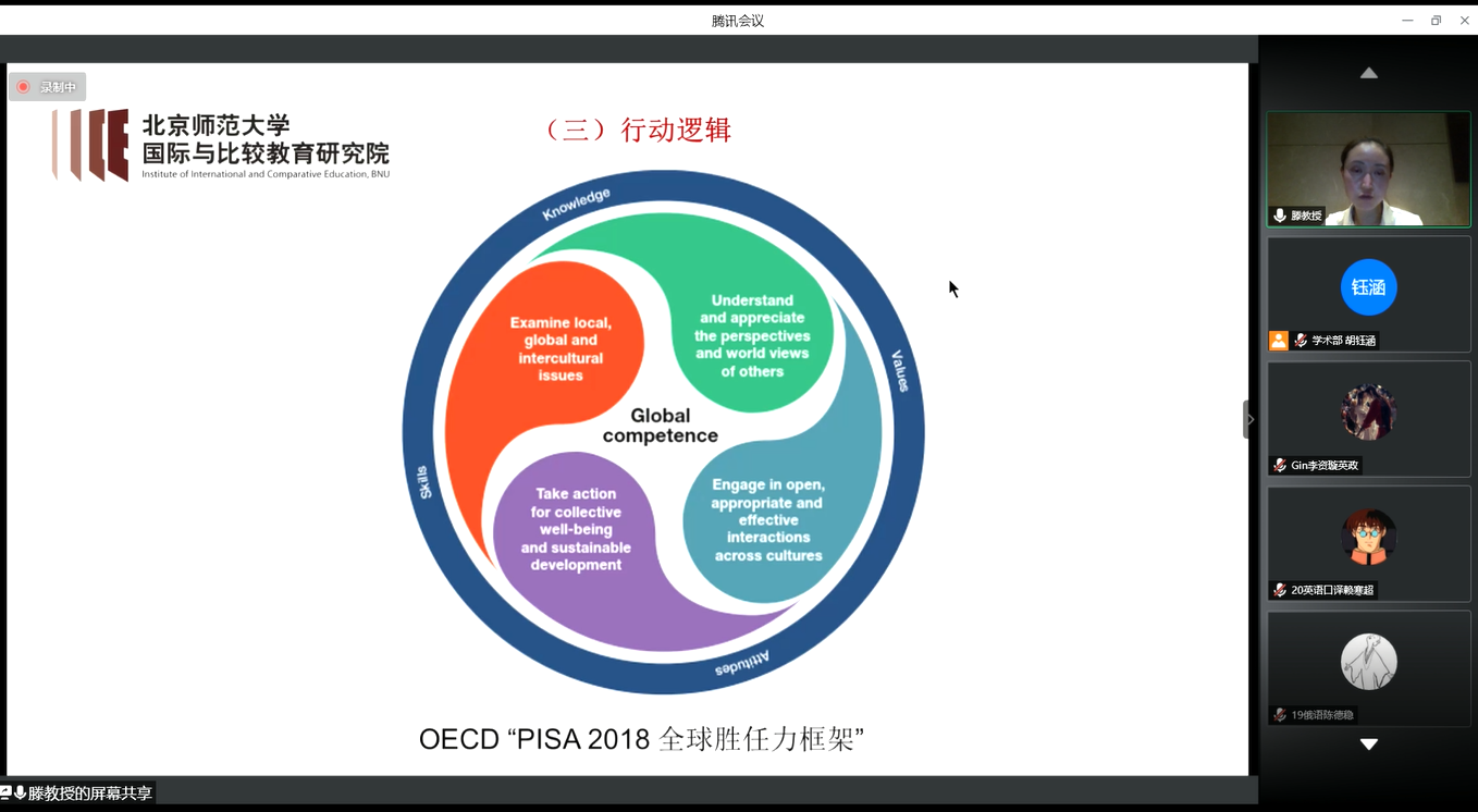 为进一步推进国际组织人才培养与推送工作、提升我校学生的全球胜任力,5月14日晚,必赢76net线路唯一官方网站“百廿山大 九秩外院”系列学术报告举行。北京师范大学国际与比较教育研究院教授、博士生导师、副院长滕珺通过腾讯会议作了主题为“全球胜任力在中国:怎么看,怎么办?”的讲座。