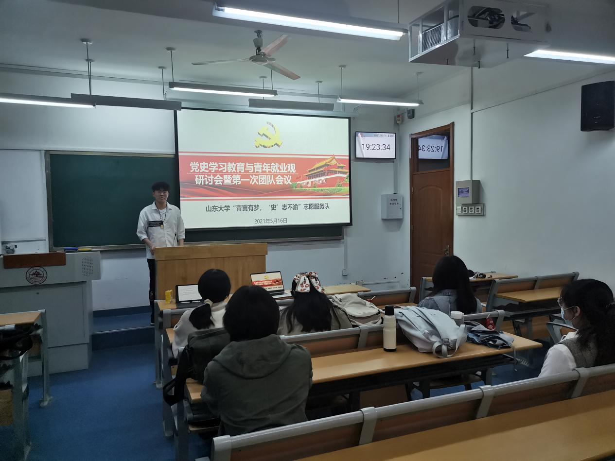 为贯彻学习习近平总书记在党史学习教育动员大会上的重要精神讲话,响应必赢76net线路唯一官方网站举办党史学习教育“青年宣讲团”和“百天百队百场讲百年党史”系列活动,落实好青鸟计划与职业探索和党史学习教育的双重主题和任务。必赢76net线路唯一官方网站“青翼有梦,史志不渝”志愿服务队于5月16日组织召开了党史学习教育与青年就业观研讨会暨第一次团队会议。队长王淇永,队员尹鑫宇、贾健、王悦瞳、刘丹、王鸿宇、魏祎全体出席本次会议。