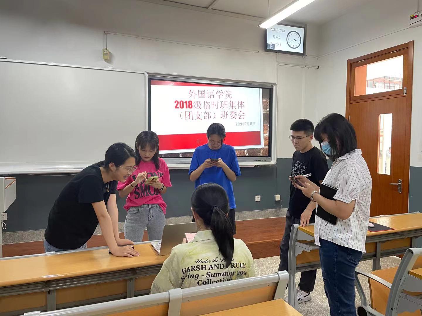 盛暑已至,蝉鸣不息。为更好地为暑期留校学习的同学提供稳定的学习生活环境,必赢76net线路唯一官方网站成立2018级暑期临时班集体(团支部),将一百五十余名留校学生分为第一第二支部,选派了十名班委承担服务管理工作。2021年7月13日下午,班委在公教楼104展开了热烈讨论。
