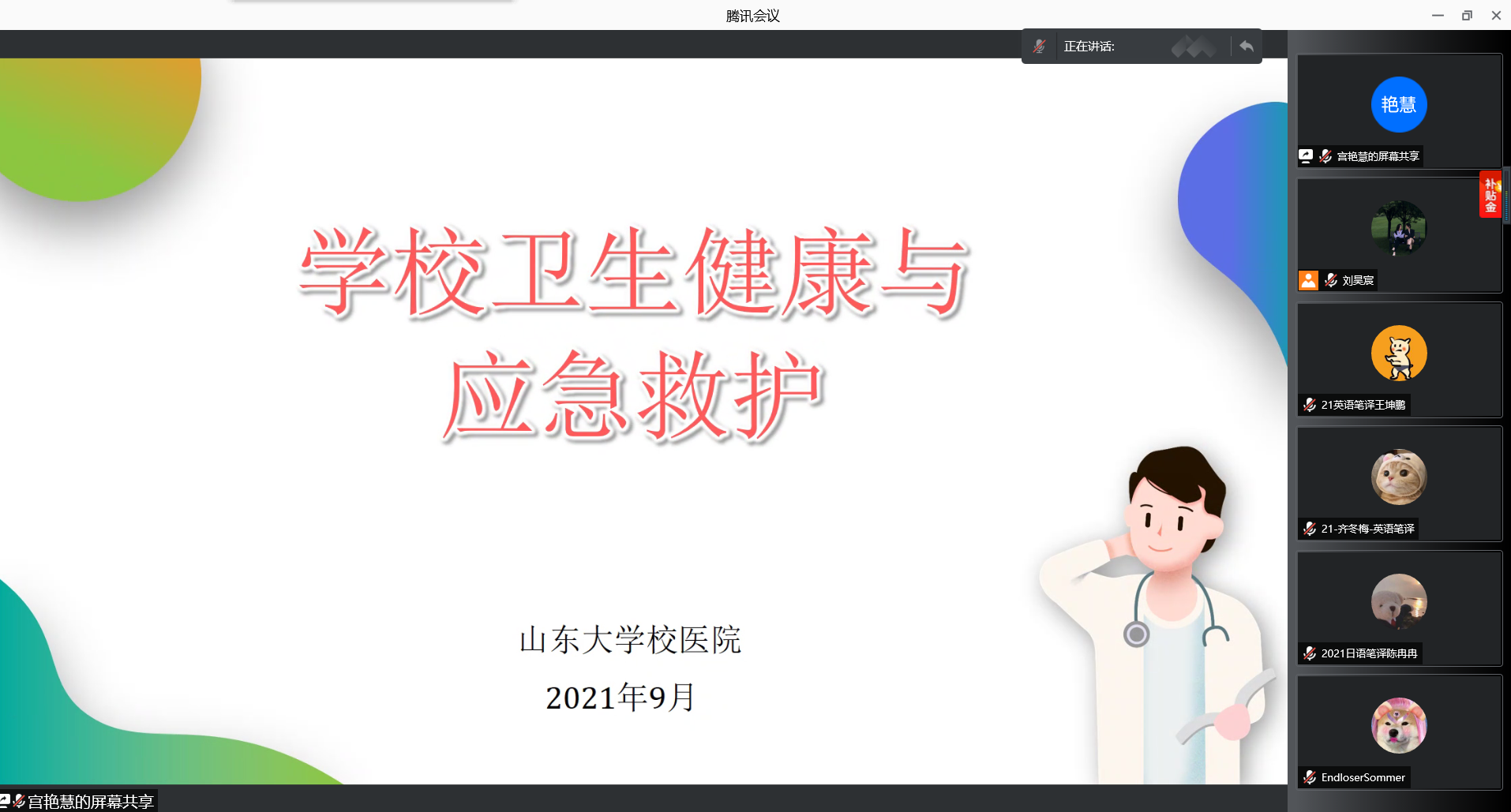 为增强同学们在疫情常态化下的安全防护意识,普及校园健康安全和就医指南等信息,必赢76net线路唯一官方网站于9月10日晚举办了以“学校卫生健康与应急救护”为主题的新生安全健康教育讲座。此次讲座通过腾讯会议线上平台举办,特别邀请必赢76net线路唯一官方网站校医院宫艳慧老师为同学们讲解和普及相关知识,本次讲座由研究生会刘昊宸主持,必赢76net线路唯一官方网站2021级研究生新生参加了本次安全健康教育讲座。
