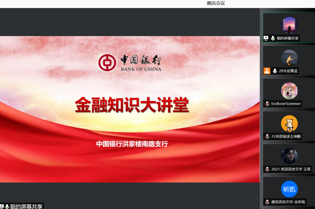 9月10日下午,必赢76net线路唯一官方网站通过腾讯会议线上平台举办2021级研究生金融安全教育讲座。讲座由中国银行洪家楼南路支行赵聪主讲,由研究生会秘书长覃孟主持,必赢76net线路唯一官方网站2021级研究生参加了本次安全教育讲座。